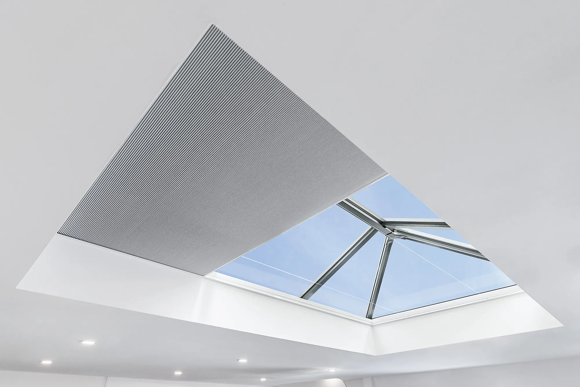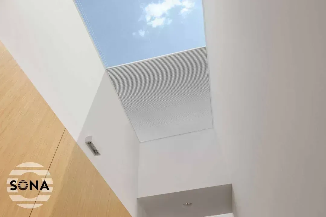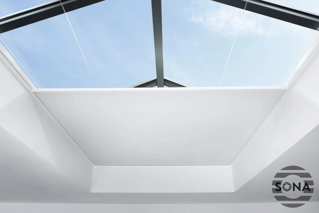 Enhance your skylight or roof lantern window with SonaSky, our beautifully engineered, automated skylight blind system. Designed to combine style, high-quality fabric, and precision German engineering, our electric skylight blinds offer both elegance and functionality. Crafted with intelligent automation, our cellular blinds provide seamless operation and superior insulation. Each blind is hand-finished by experts in our UK factory, ensuring exceptional quality and attention to detail.